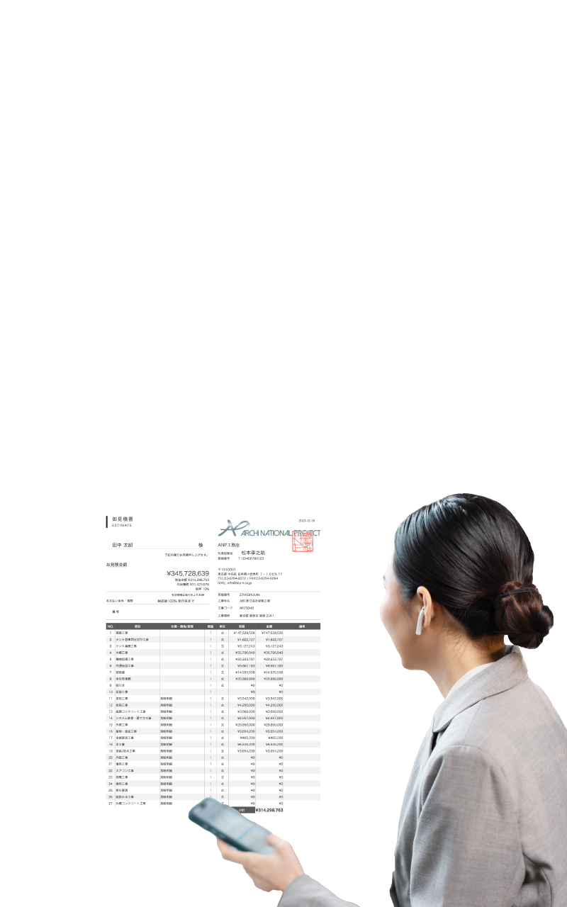 メールで受領した見積書、カメラで撮影した見積書もAI SHAREで自動判別集計し手入力でのミスを回避します。AI SHAREの実行予算と併用することで発注までの作業をラクにします。