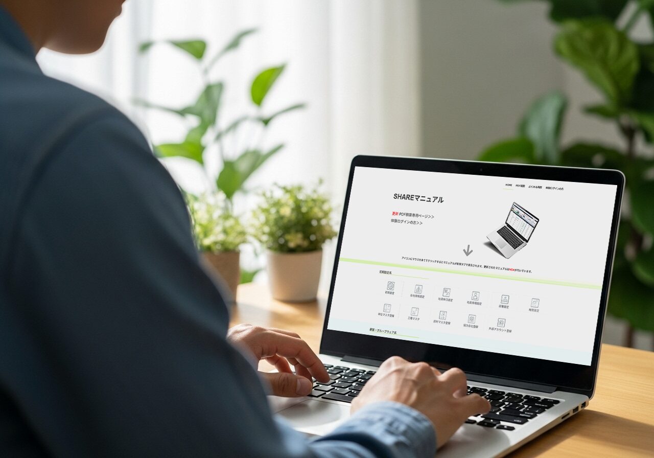 「AI SHAREマニュアル」は、動画と手順書で効率的に学習できる専用サポートサイトです。いつでも、どこからでも、お客様のペースで操作方法や活用のコツを習得いただけます。